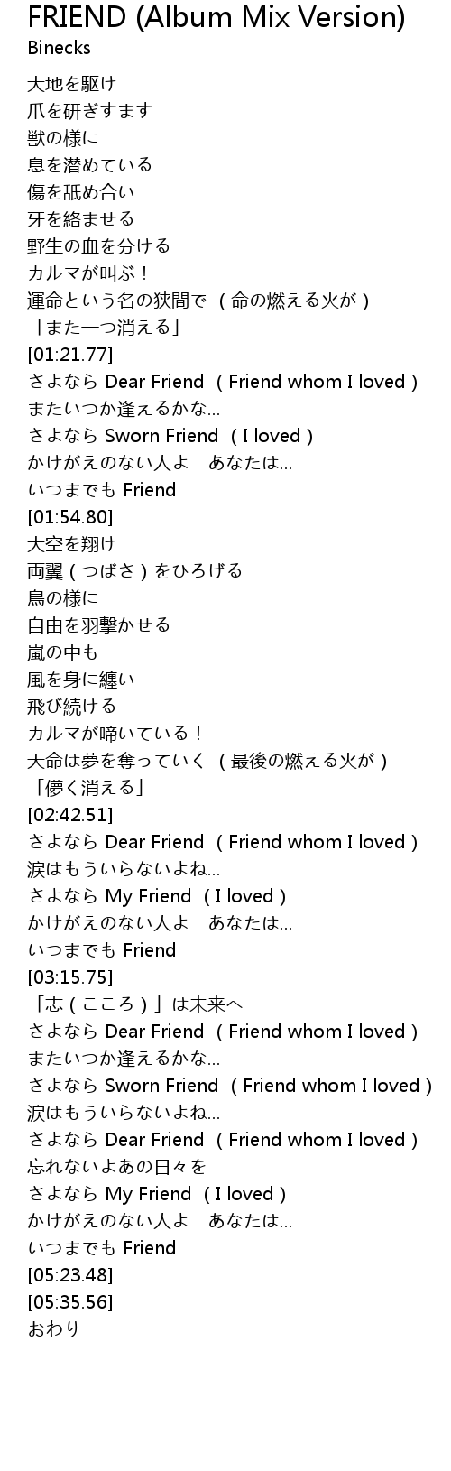 | [04:52.89] | Dear Friend Friend whom I loved |