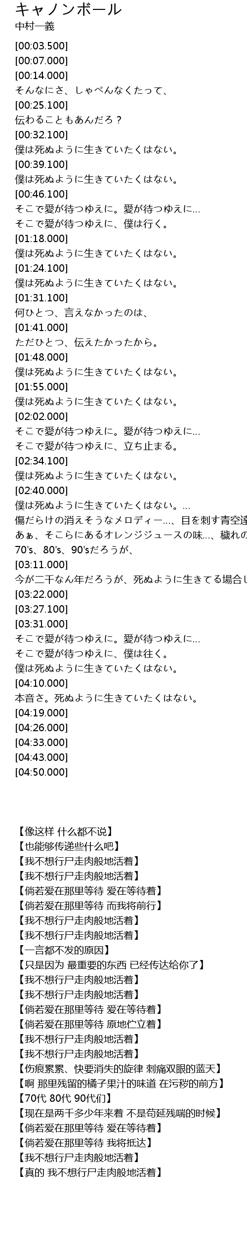 | [01:19.000] | 僕は死ぬように生きていたくはない。 |
