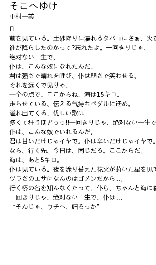 | 行く桥の名を知んなくたって、仆ら、ちゃんと海に着けたから。 | |