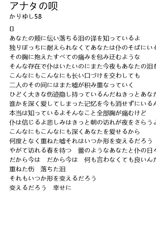 | あなたの颊に伝い落ちる泪の译を知っているよ | |