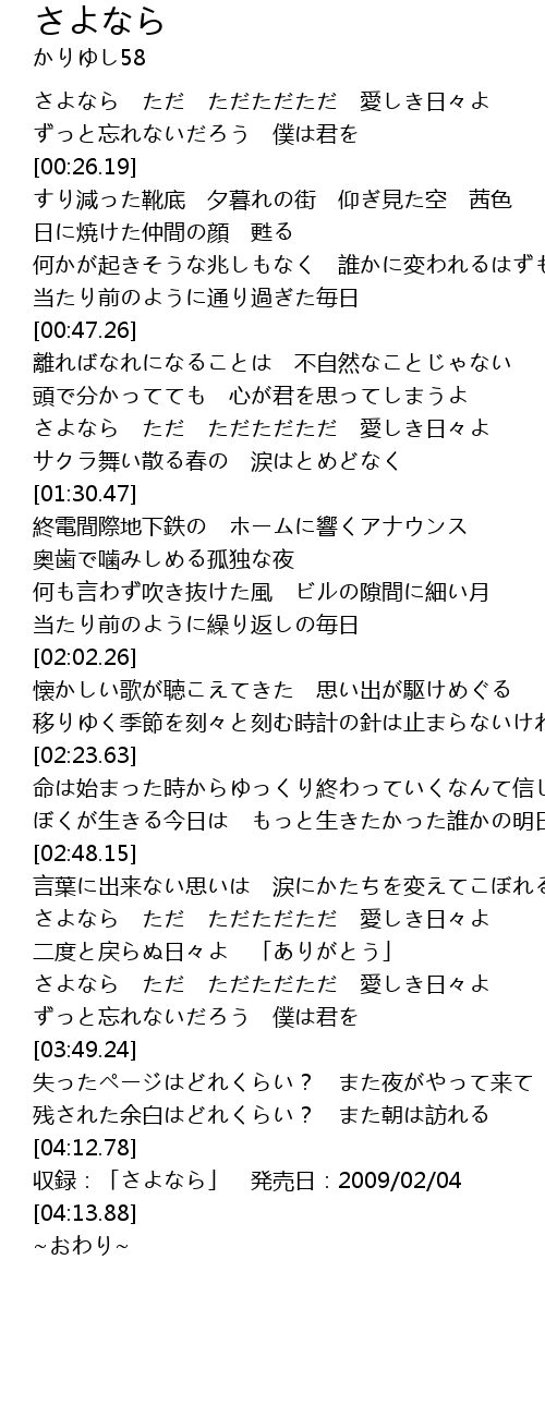 | [04:13.47] | 収録:「さよなら」 発売日:2009/02/04 |