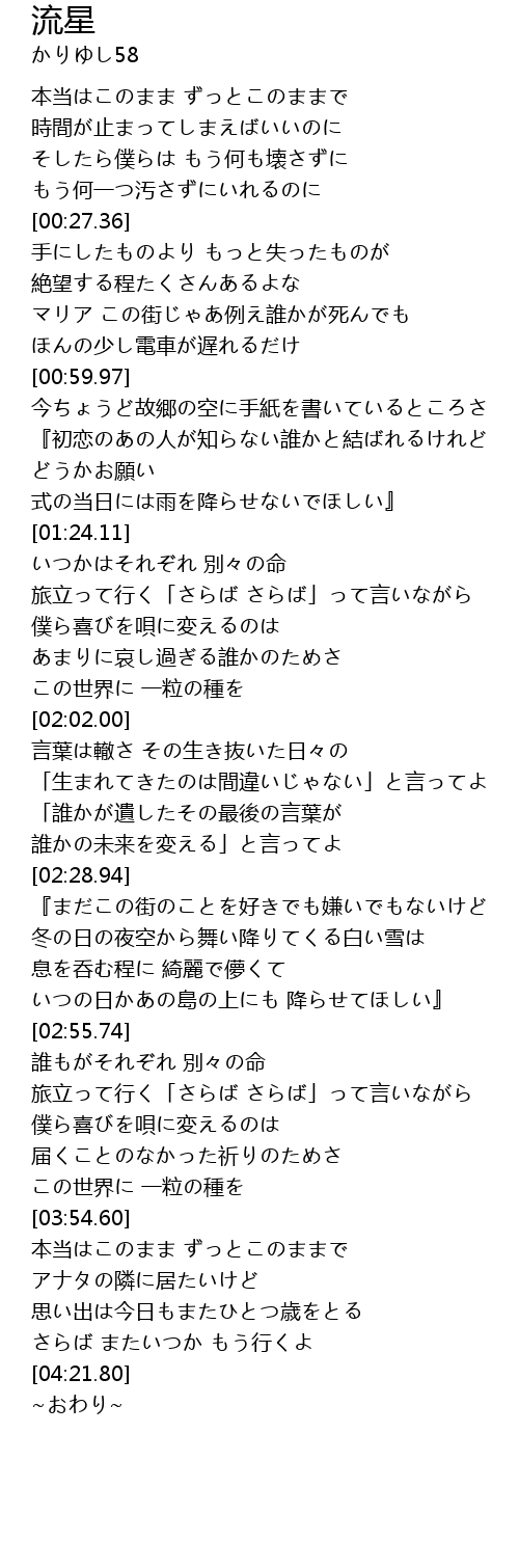 | [04:12.40] | 思い出は今日もまたひとつ歳をとる |