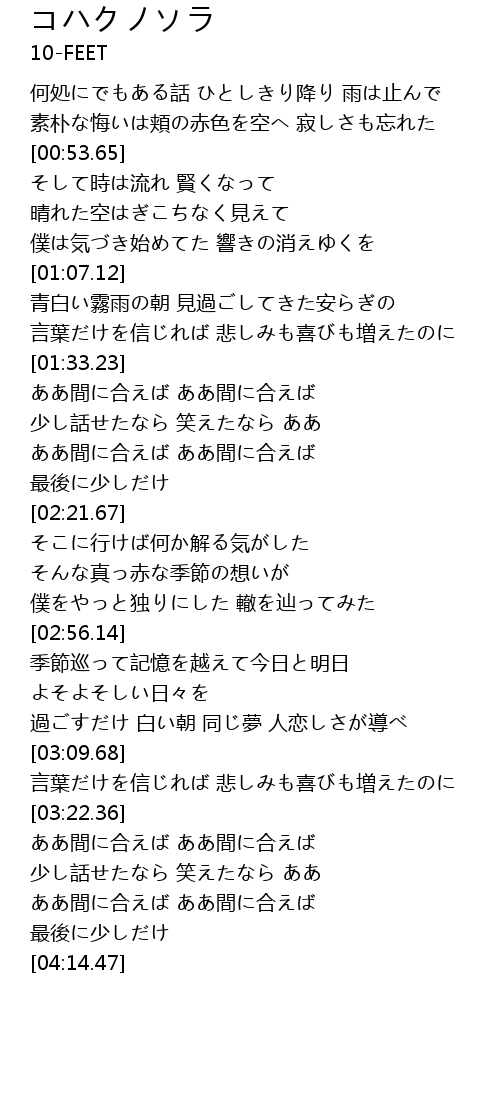 | [03:54.71] | ああ間に合えば ああ間に合えば |