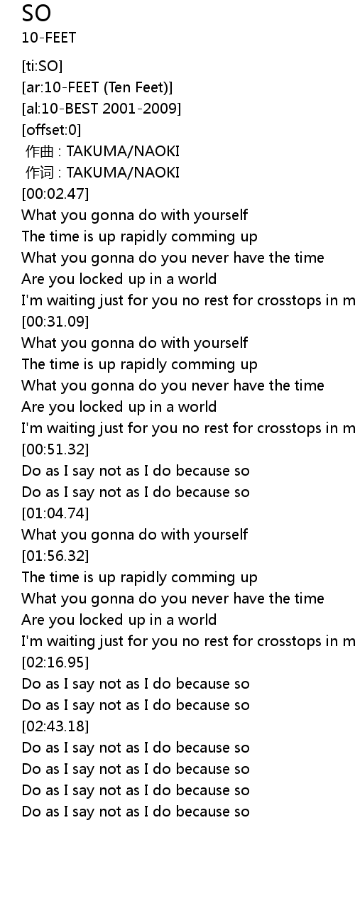 | [02:04.07] | I' m waiting just for you no rest for crosstops in my mind |