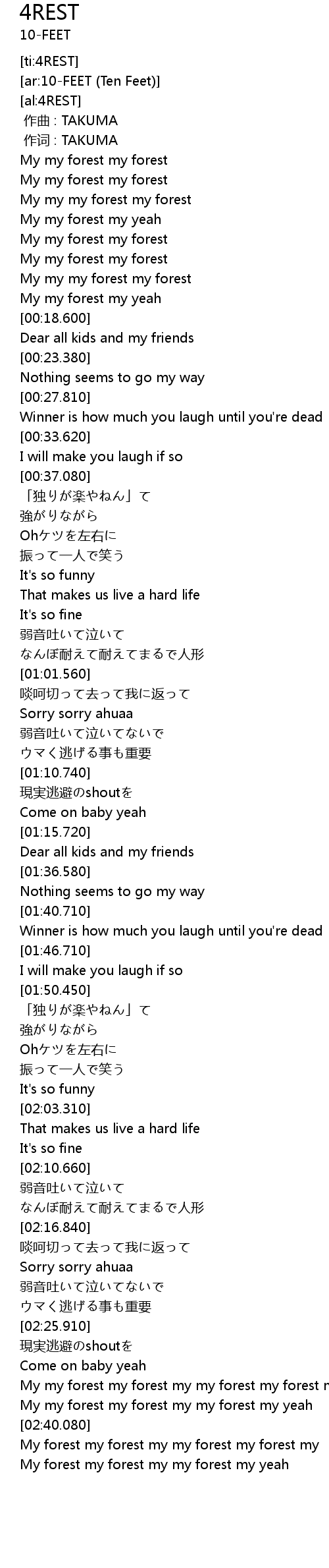 | [02:36.010] | My my forest my forest my my forest my yeah |