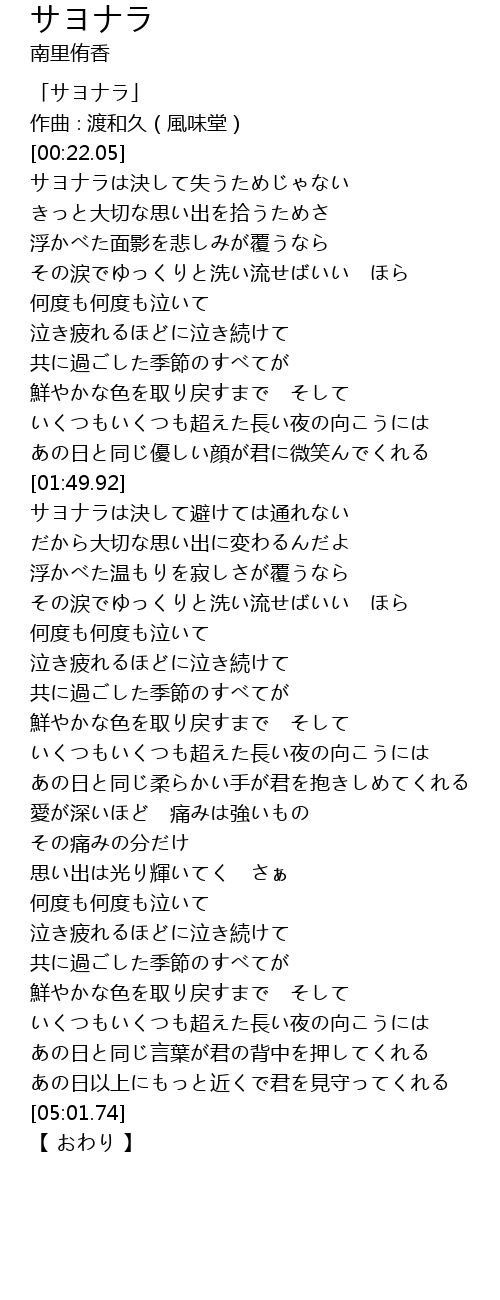 | [00:01.05] | 「サヨナラ」 |