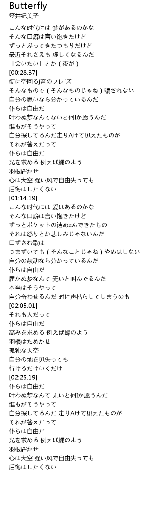 | [02:09.42] | 高みを求める 例えば蝶のよう |