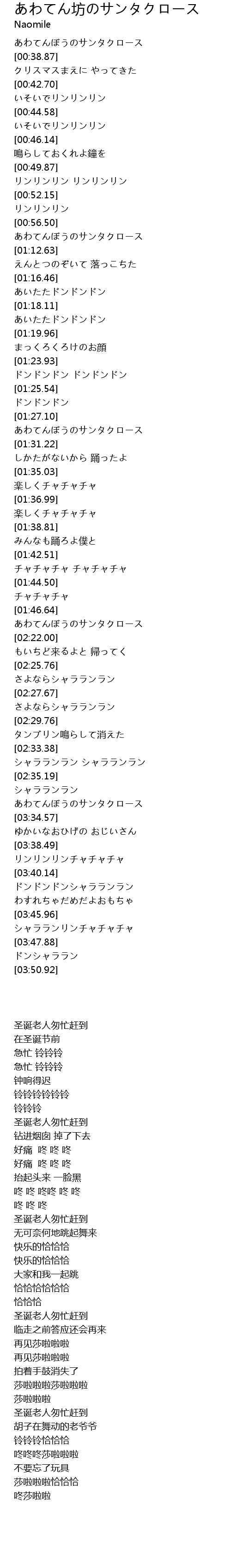 | [03:31.30] | あわてんぼうのサンタクロース |