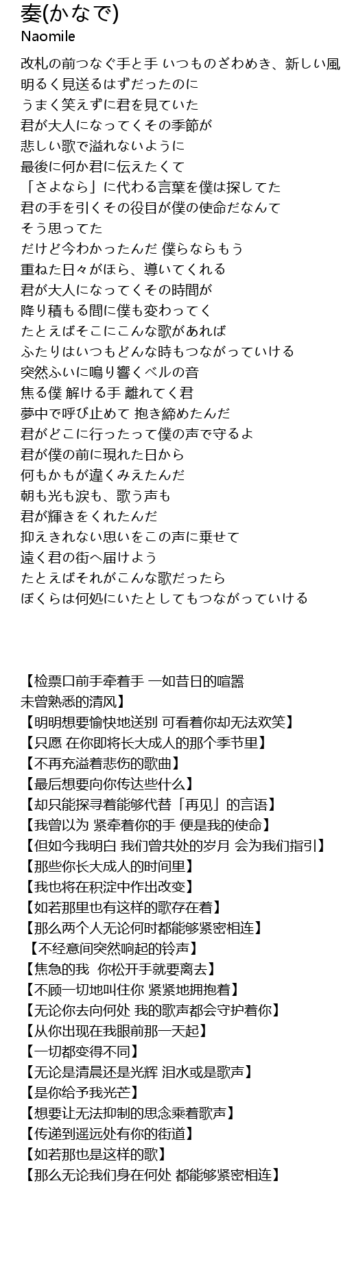 | [00:00.06] | 改札の前つなぐ手と手 いつものざわめき、新しい風 |