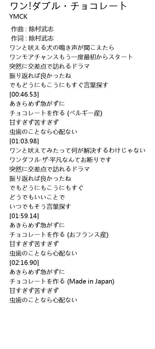 | [02:21.56] | チョコレートを作る (Made in Japan) |