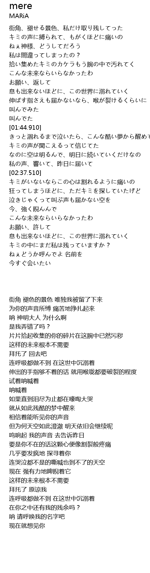 | [03:35.550] | キミの中にまだ私は残っていますか? |