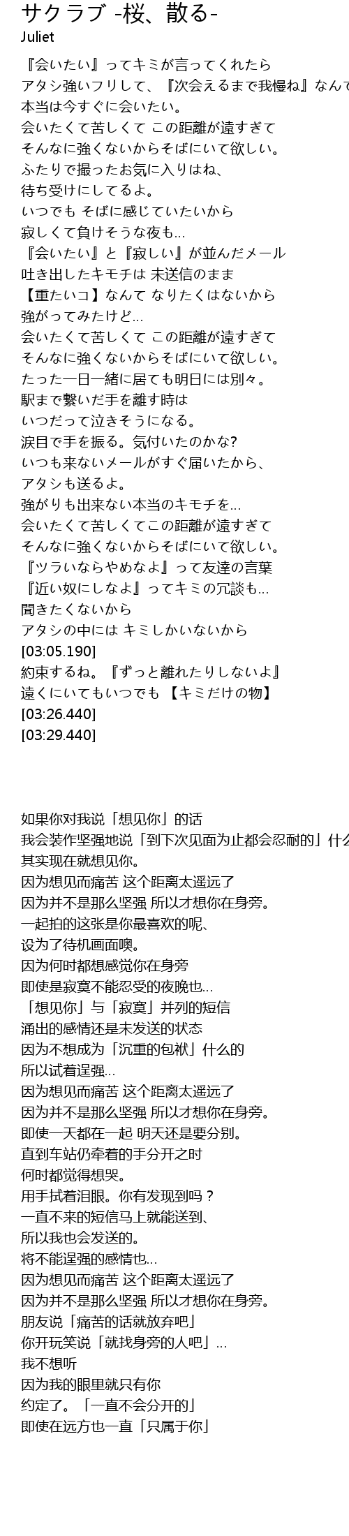 | [03:16.170] | 遠くにいてもいつでも 【キミだけの物】 |