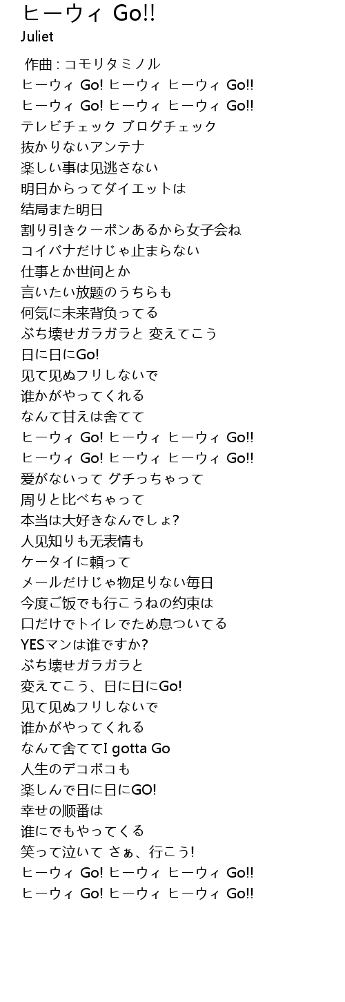 | [00:10.29] | ヒーウィ Go! ヒーウィ ヒーウィ Go!! |