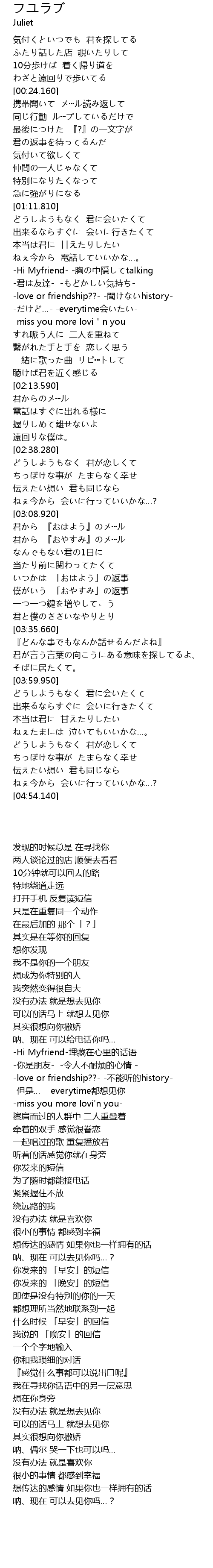 | [01:46.000] | -love or friendship??- -聞けないhistory- |