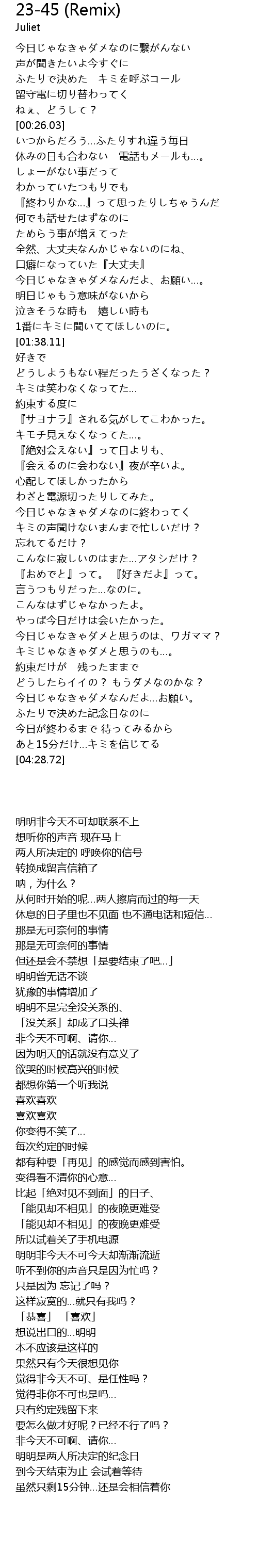 | [04:21.42] | あと15分だけ…キミを信じてる |