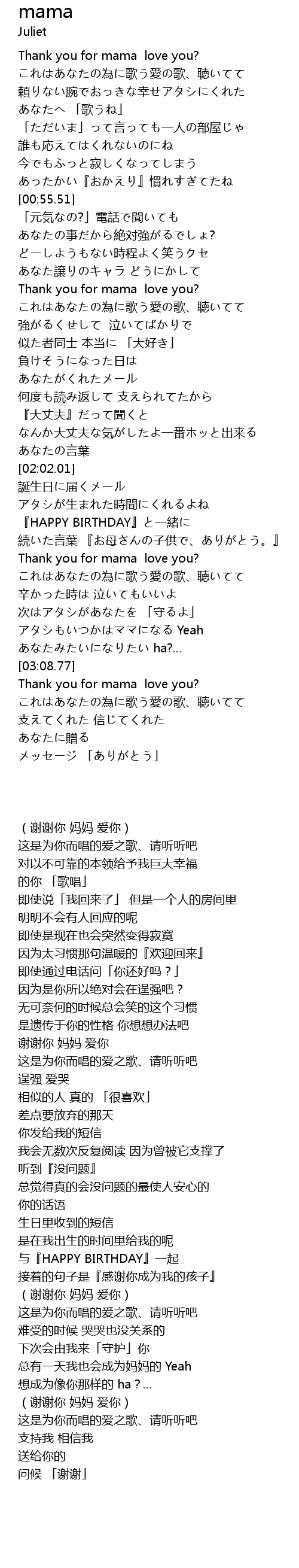 | [02:24.78] | Thank you for mama love you? |