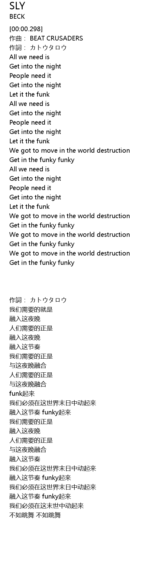 | [00:01.308] | zuò qǔ: BEAT CRUSADERS |