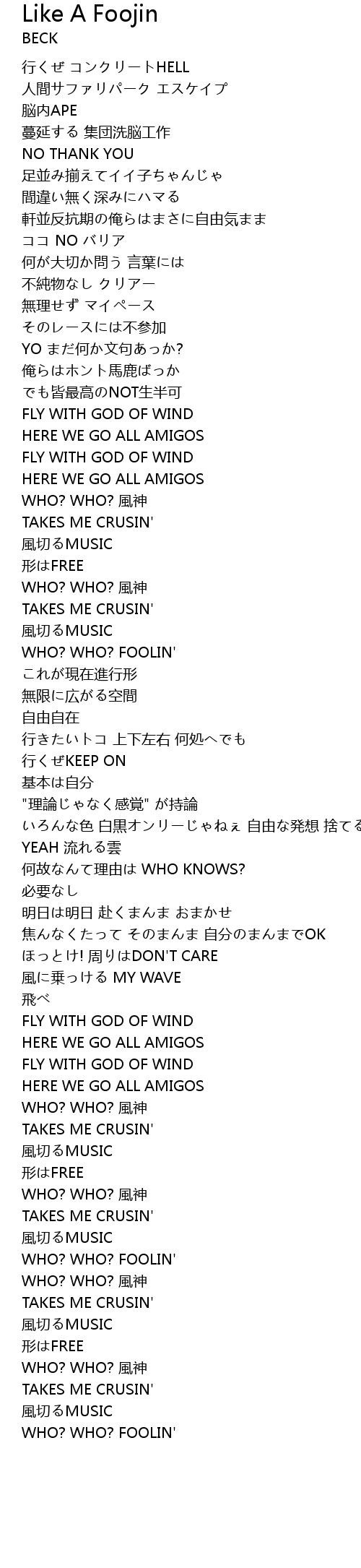 | 歌曲 | Like A Foojin |