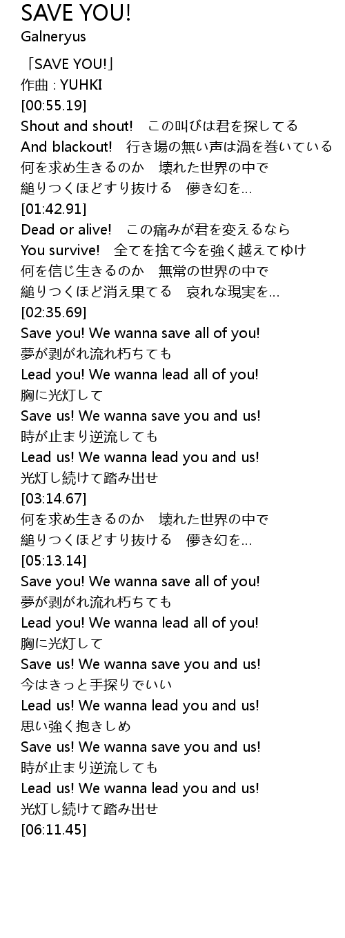 | [06:00.21] | Lead us! We wanna lead you and us! |