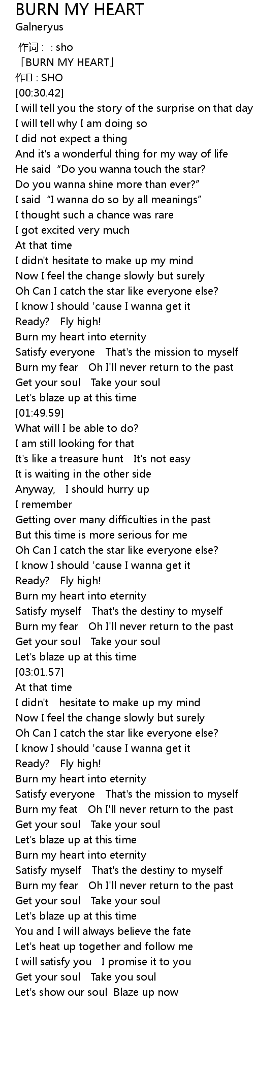 | [06:17.14] | Let' s show our soul Blaze up now |