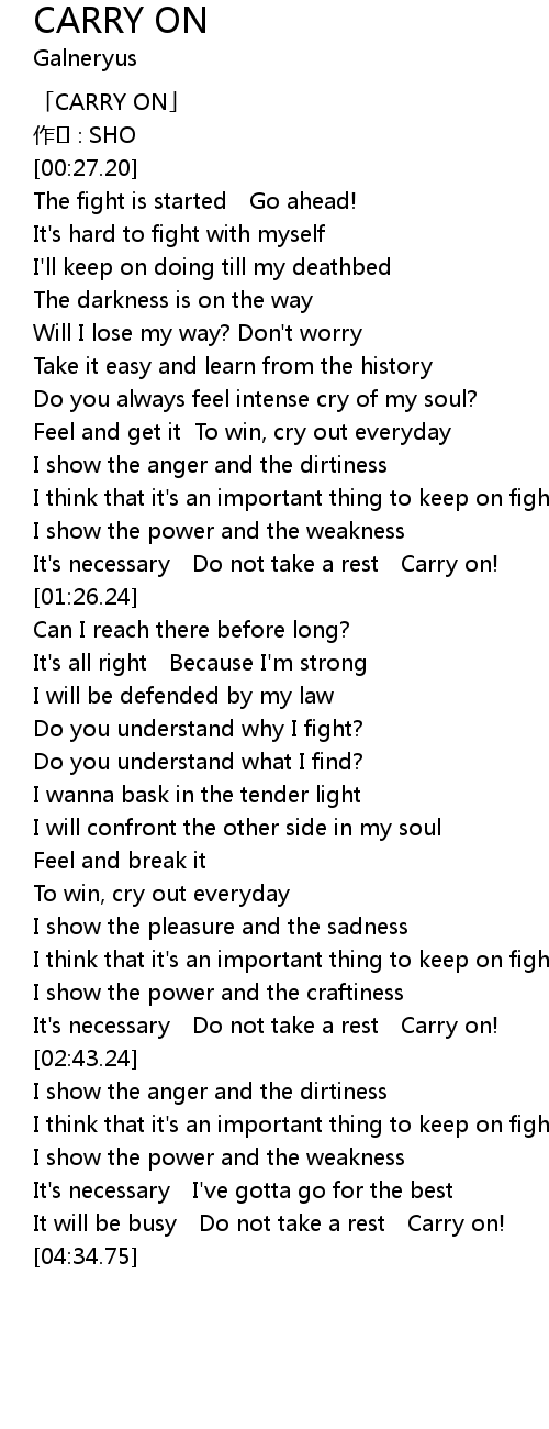| [01:17.53] | It's necessary Do not take a rest Carry on! |
