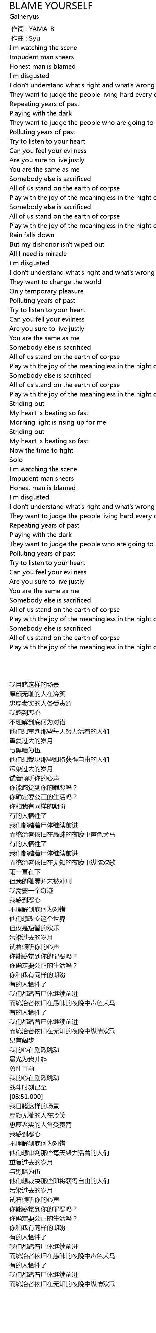 | [00:00.000] | 作词 : YAMA-B |