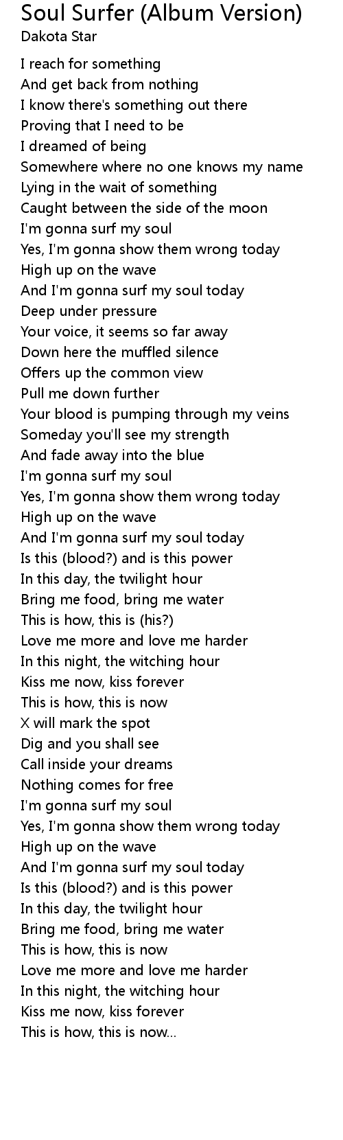 And I'm gonna surf my soul today |