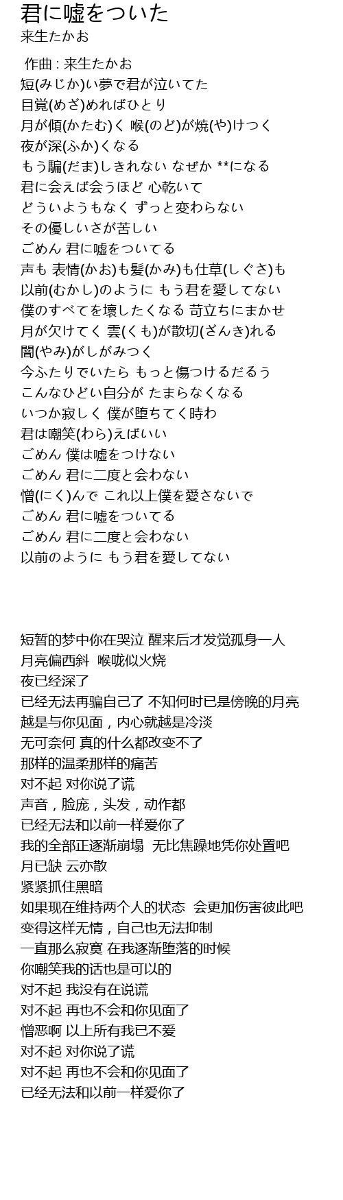| 歌曲 | 君に嘘をついた |