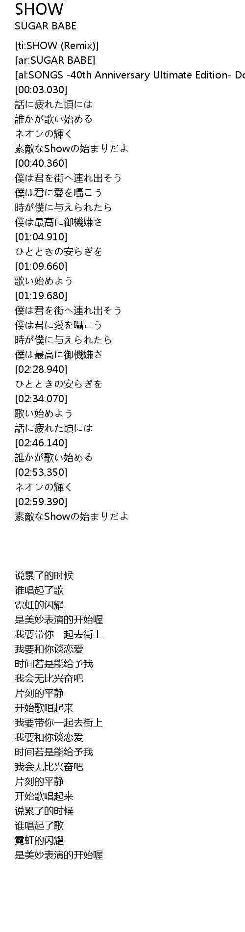 | [03:00.100] | 素敵なShowの始まりだよ |