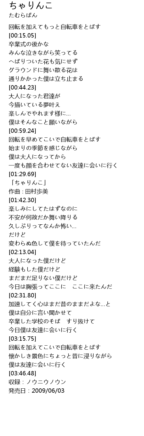 | [03:16.72] | 回転を加えてこいで自転車をとばす |