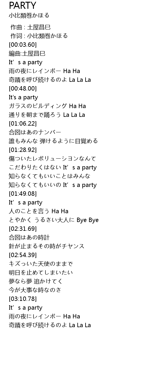 | [01:41.75] | 知らなくてもいいの It’s a party |