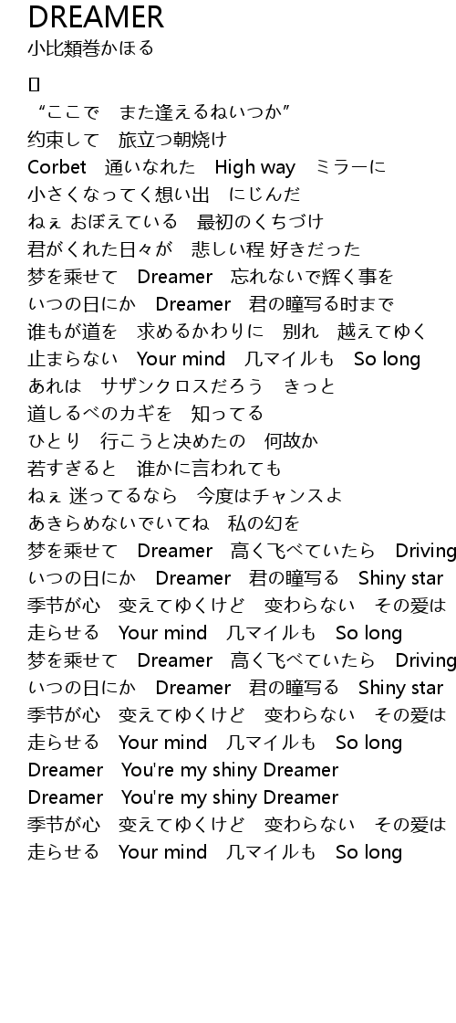 | いつの日にか Dreamer 君の瞳写る Shiny star | |
