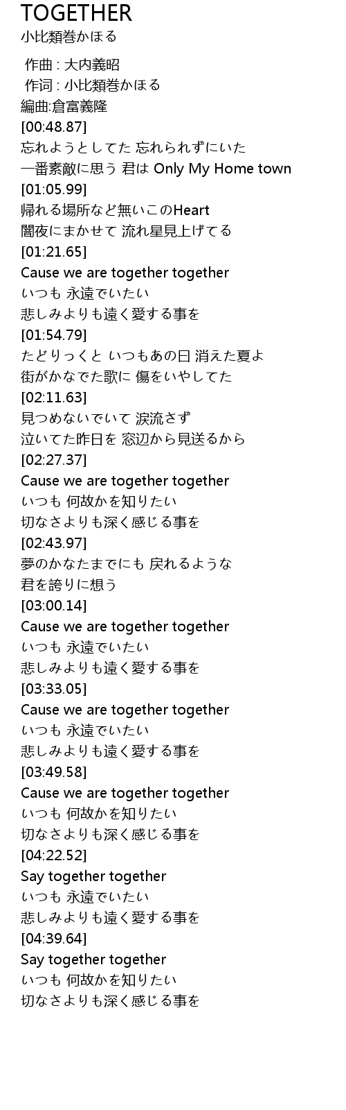 | [00:57.57] | 一番素敵に思う 君は Only My Home town |
