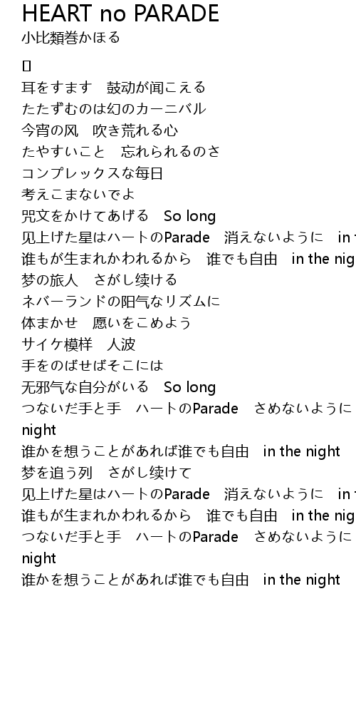 | つないだ手と手 ハートのParade さめないように in the night | |