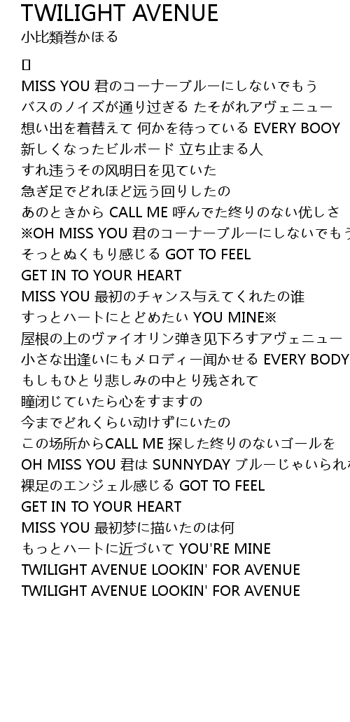 | ※OH MISS YOU 君のコーナーブルーにしないでもう | |