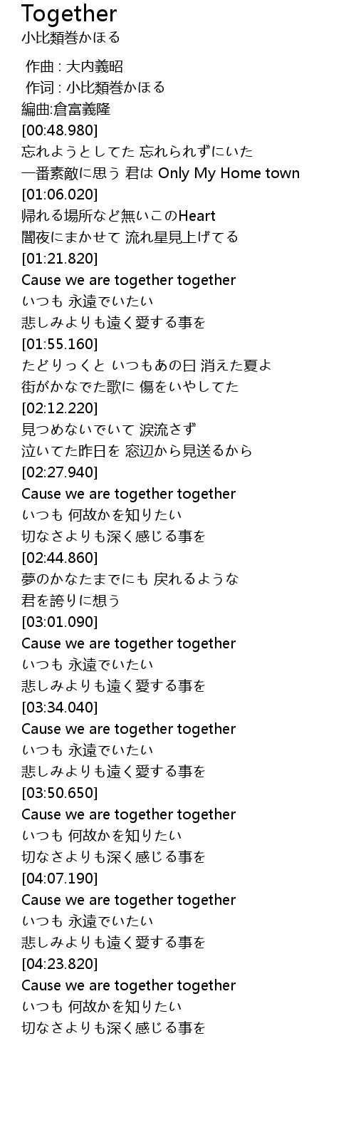 | [00:57.590] | 一番素敵に思う 君は Only My Home town |