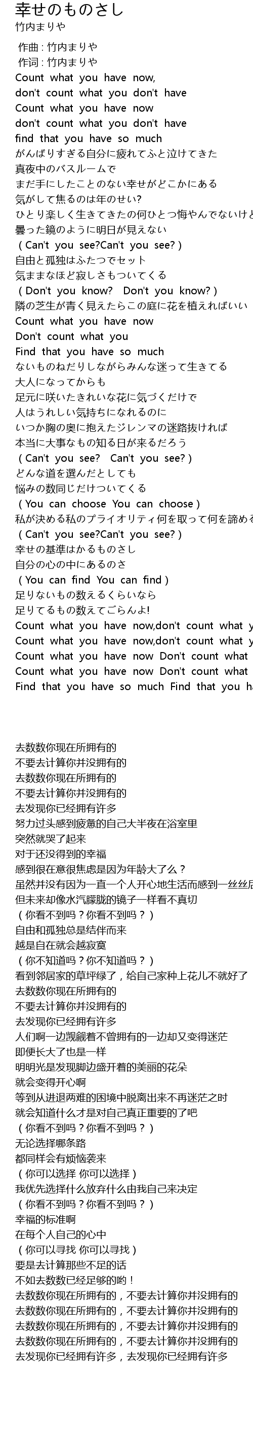 | [00:17.55] | don' t count what you don' t have |