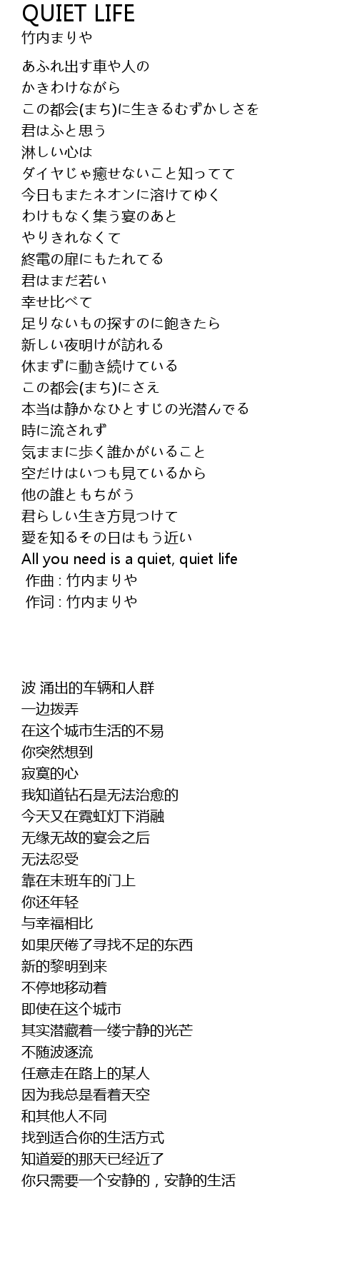 | 歌曲 | QUIET LIFE |