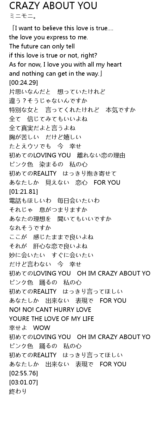 | [02:29.31] | 初めてのLOVING YOU OH IM CRAZY ABOUT YOU |
