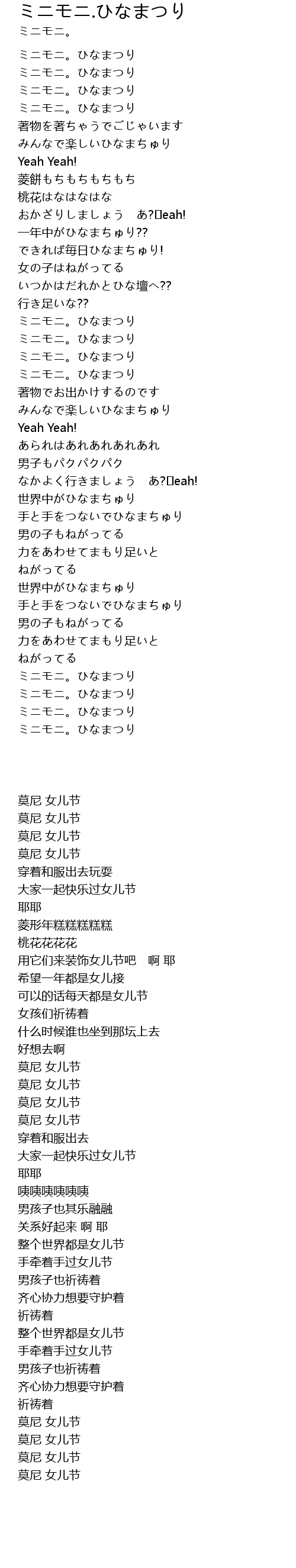 | [00:51.87] | 一年中がひなまちゅり?? |