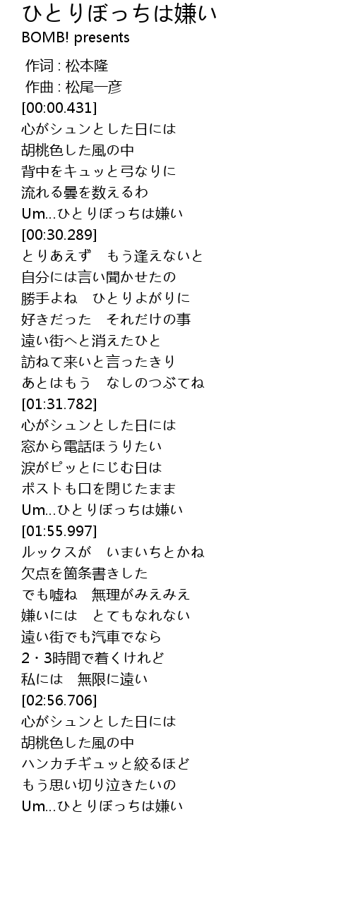 | [01:49.179] | Um…ひとりぼっちは嫌い |