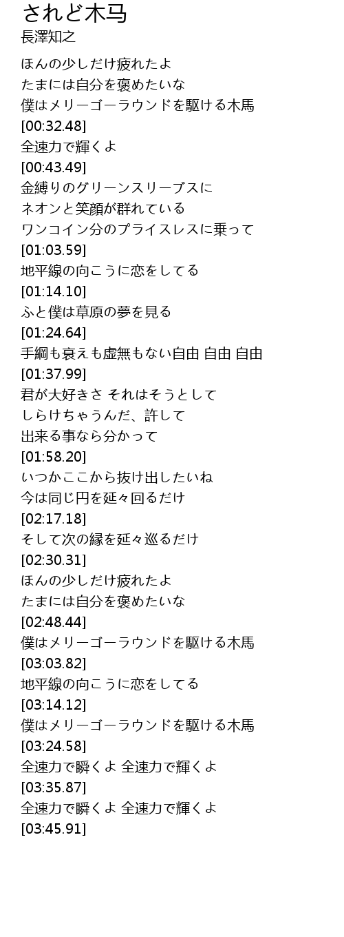 | [03:17.65] | 僕はメリーゴーラウンドを駆ける木馬 |