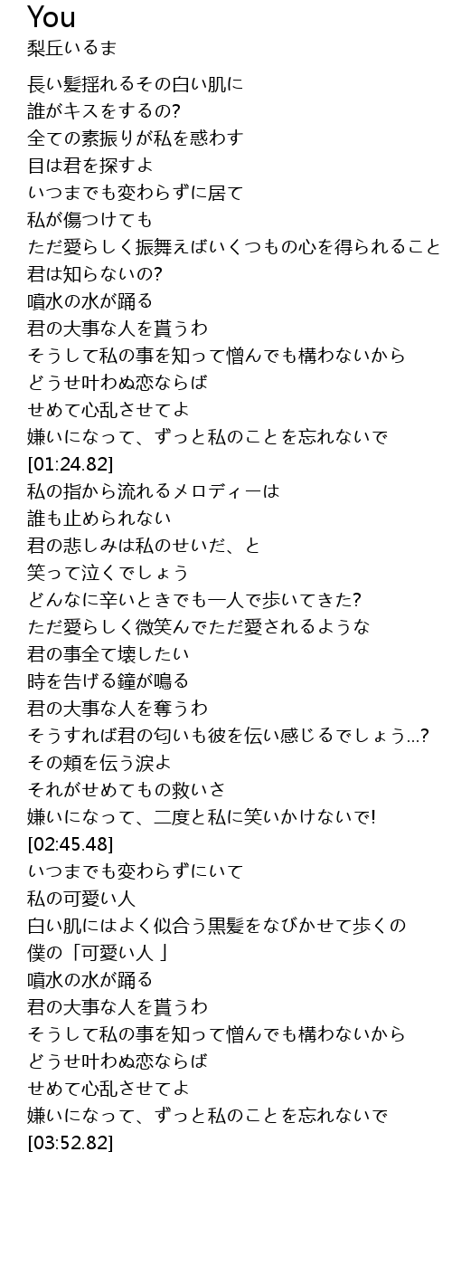 | [01:16.30] | 嫌いになって、ずっと私のことを忘れないで |