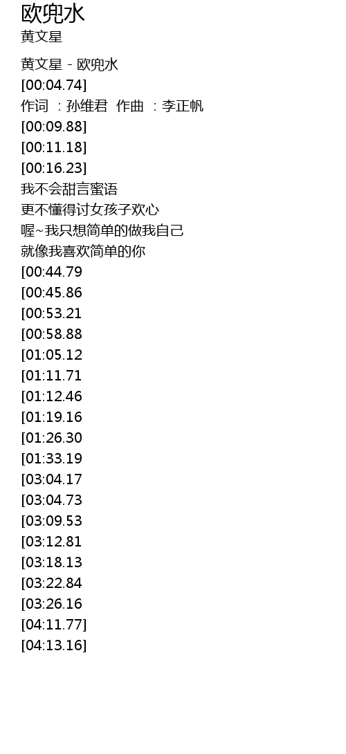 | [00:01.12] | 黄文星 - 欧兜水 |
