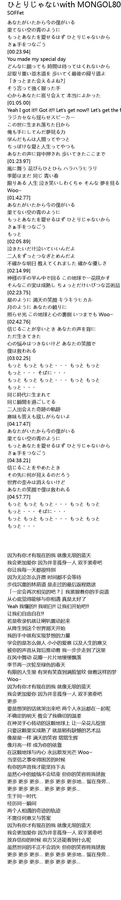 | [01:52.83] | もっとあなたを愛せるはず ひとりじゃないから さぁ手をつなごう |