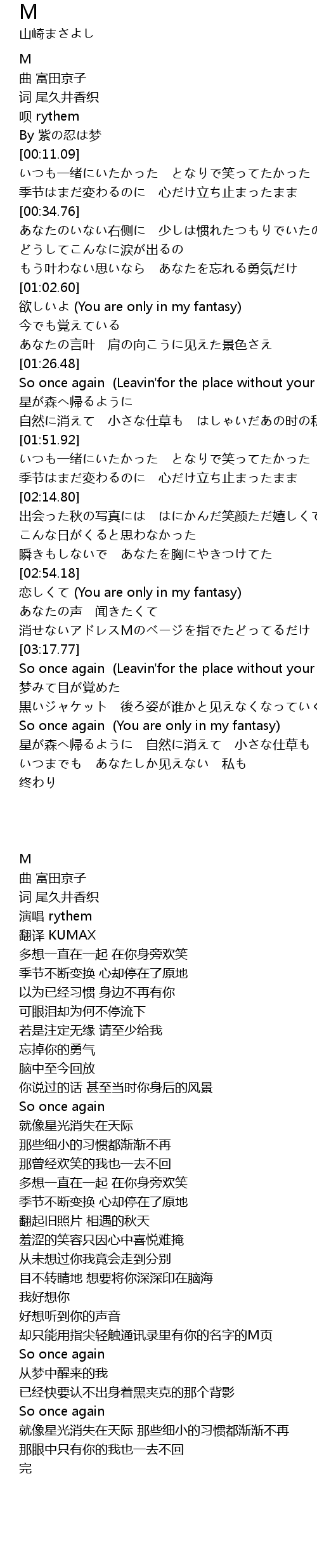 | [00:09.25] | 翻译 KUMAX |