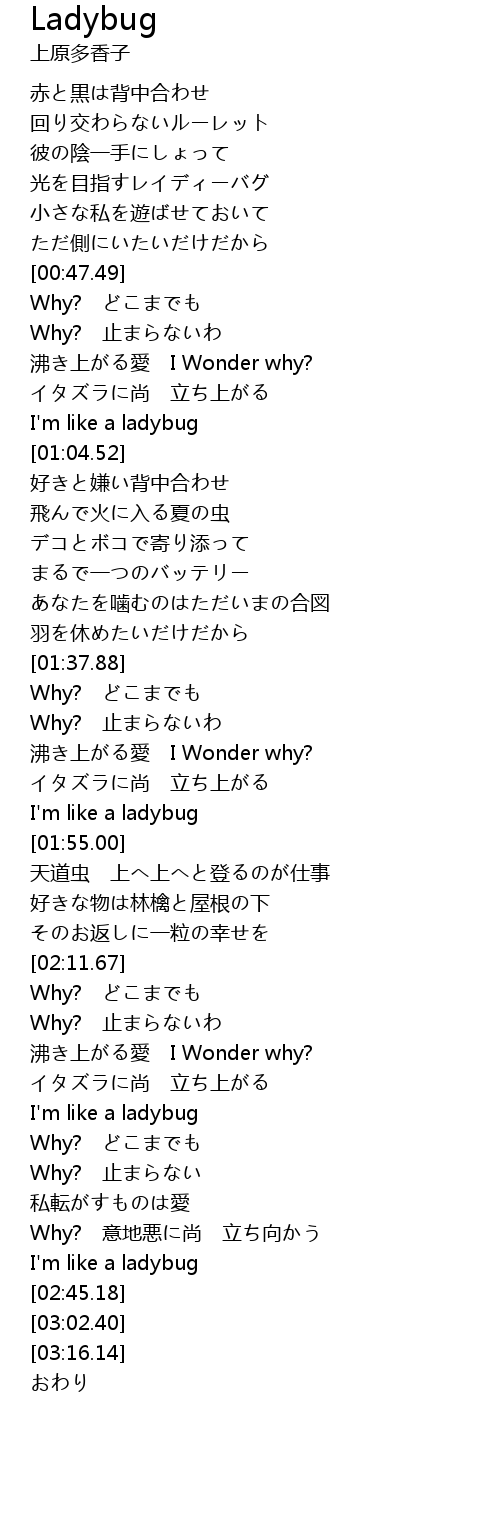 | [01:55.27] | 天道虫 上へ上へと登るのが仕事 |