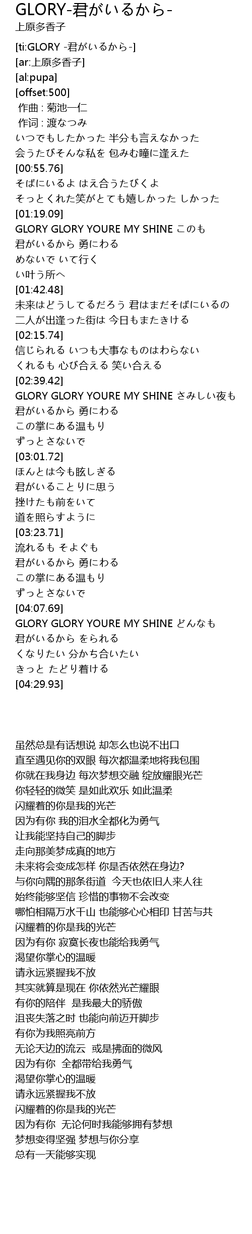 | [01:20.16] | GLORY GLORY YOURE MY SHINE |