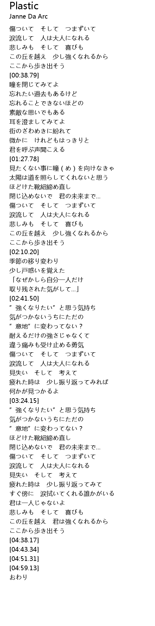 | [04:14.11] | すぐ傍に 涙拭いてくれる誰かがいる |