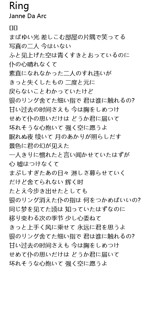 | 银のリング消えた仆の指は 何をつかめばいいの? | |